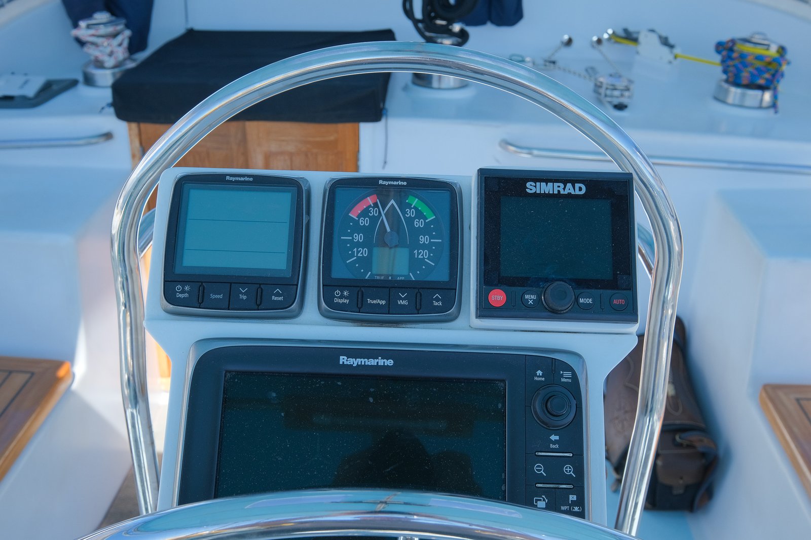 - Simrad AP44 Autopilot with dual controllers. Constant running hydraulic drive.